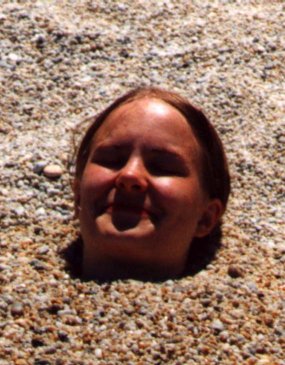 Rannalla rasvasimme itsemme ja makasimme hetken auringossa ennen kuin keksimme, että vedenrajan soraan voi haudata kaverin. Kaivoimme Timolle kuopan ja yritin sitten epätoivon vimmalla peittää varpaita, joita aallot huuhtelivat.