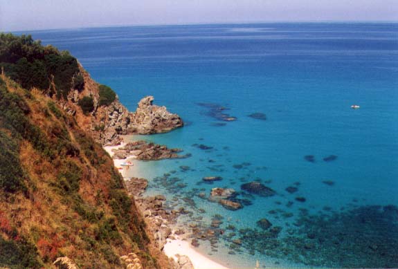 Koska oli kuuma, menimme uimaan. Ensin piti ajaa autolla outoja oikoteitä, sitten kävelimme pitkän matkan käärmeiden keskellä kunnes ranta näkyi kaukana allamme. Näky oli kuin matkaoppaasta tai -mainoksesta: sinivihreä kirkas vesi, pohja näkyy kauas, vaalea ranta, muutama kivi tummana vedessä. Lähdimme laskeutumaan kohti aliparatiisia.