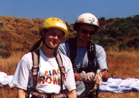 Päivän suurena ohjelmanumerona oli liitovarjoilu. Kävimme hakemassa kaverin ja ajoimme korkealle vuorelle. Toinen kaveri hyppäsi ensin kokeillakseen tuulta ja leijuikin ilmassa toistakymmentä minuuttia. Marco viritti varjoaan oikeaan asentoon ja auttoi sitten valjaat ylleni. Ilmaan nousua varten piti juosta, vasta ilmassa istua, ottaa ohjausnarut Marcon istuutumisen ajaksi ja antaa ne sitten takaisin. Alastulossa ei pitänyt pysähtyä, vain juosta.