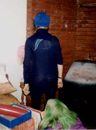 Anna venyttäää dieettimustikan asuaan. Greta katselee