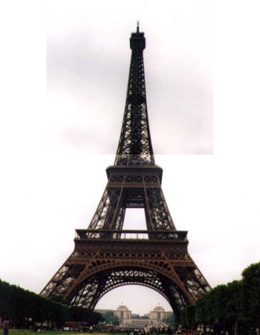 1900 Eiffel-tornin huippu. Maksoi 18 F portaisiin ja sitten - röyhkeää - 18 F hissillä 2. kerroksesta kolmanteen. Oli matka kyllä maksun arvoinen (kuva 3). Täältä näkyy Pariisin katujen mutkaisuus sekä roimasti kaupunkisumua. Keskusta on matalaa, laidoilta korkeita paikkoja. Joessa on ainakin tusina siltaa.